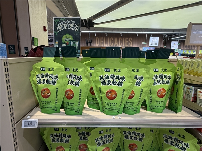 今年6月,一款独特口味的“风油精软糖”登上微博热搜,隔周在一档综艺节目中,一位明星嘉宾在录制间隙也为其他嘉宾分享了该系列商品,据了解这是京东七鲜与龙虎联名开发的七鲜风油精软糖,凭借其独特的清凉口感和趣味概念,迅速成为年轻消费者追捧的"网红零食"。有网友分享这款软糖的试吃体验,形容其"入口微甜,随后薄荷劲凉直冲脑门,提神醒脑堪比咖啡"。